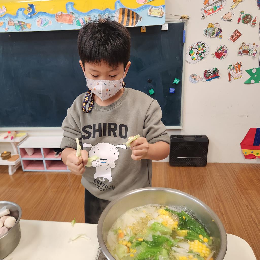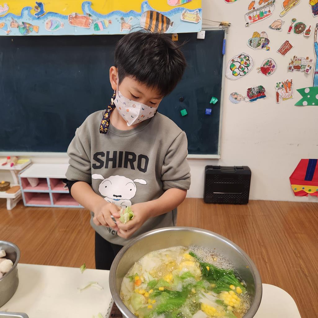 製作石頭湯~體驗自己動手做的樂趣,洗菜.切菜,願意付出與大家一起分享.